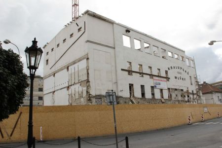 Počátek srpna byl ve znamení odstranění starého komína, který těsně sousedil s budovou mlýna. Komín nebyl dlouho používán a nacházel se ve velmi špatném technickém stavu. Na stavbě se odstranila střecha a vyklízí se horní podlaží, tj. 4. NP. V okolí hlavní budovy jsou strženy veškeré přístavky, které nemají funkci pro budoucí VTP. Postup prací dokumentují fotografie. Vysokým tempem byl odvážen vybouraný materiál, připravovala se další etapa prací. |